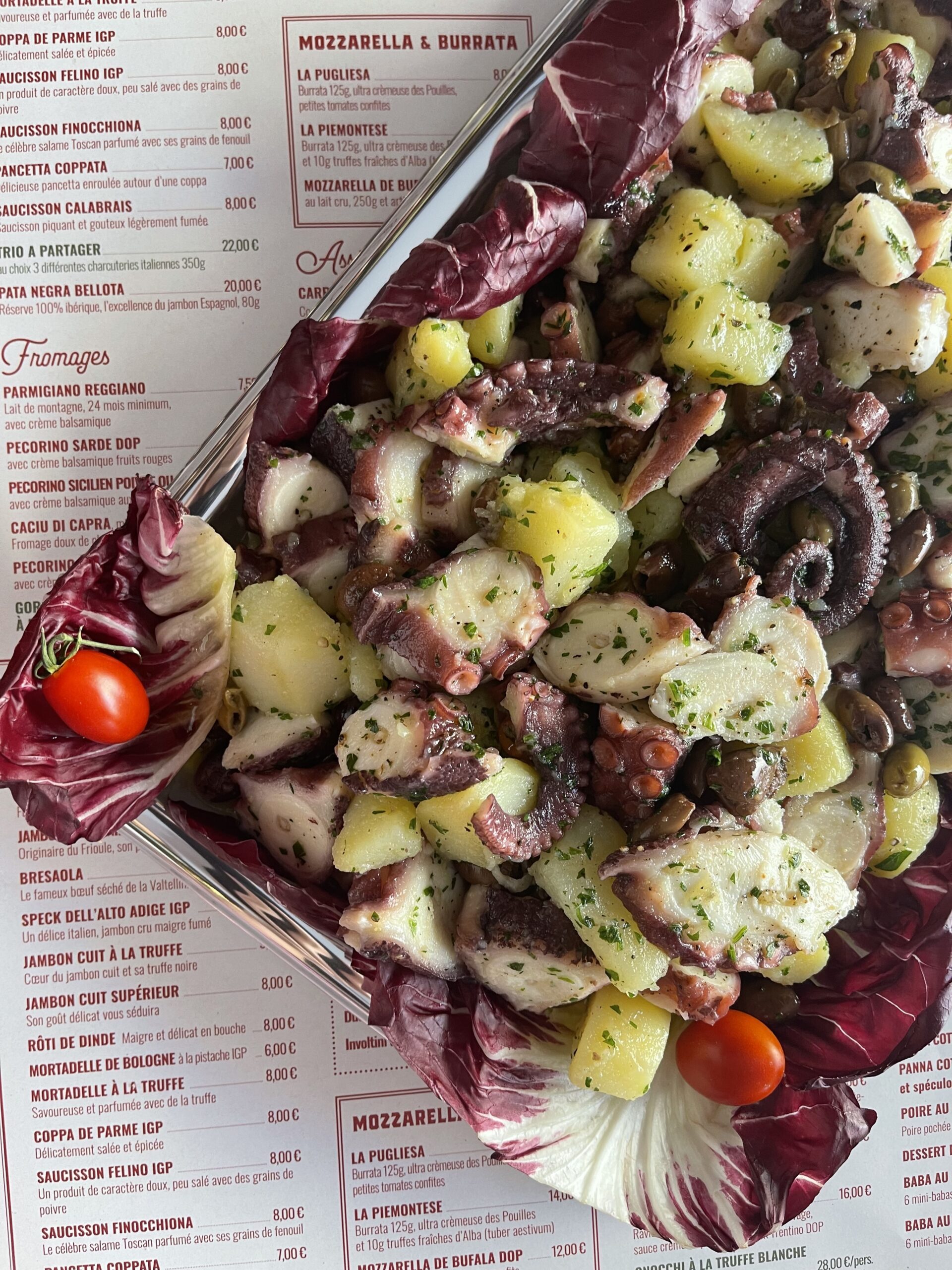Salade de poulpes et pommes de terre bio, olives noires taggiasche, persil