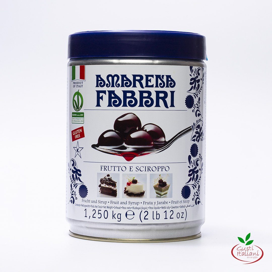 La fameuse petite cerise griotte italienne dans son sirop, pour vos recettes de gâteaux ou avec de la glace à la vanille ou du fromage blanc.